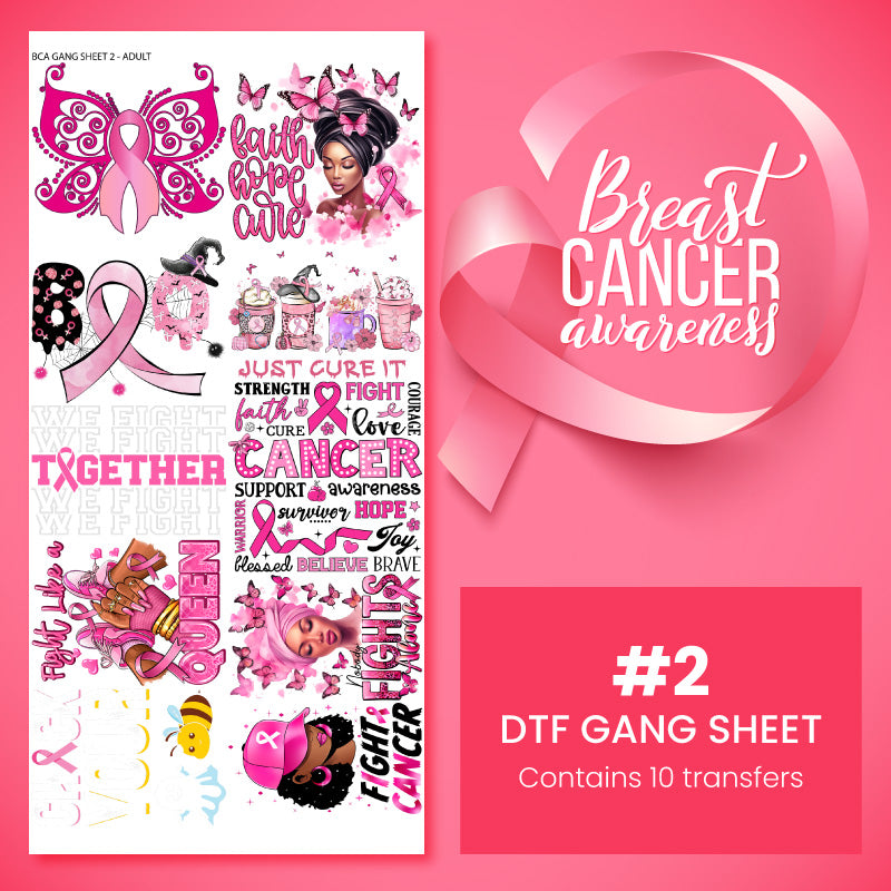 Wir präsentieren unser DTF-Transfer-Set Nr. 2 zur Brustkrebsvorsorge! Dieses einzigartige Set enthält 10 verschiedene DTF-Transfermotive. Wählen Sie Ihre gewünschte Größe anhand unserer praktischen Größentabelle unten.