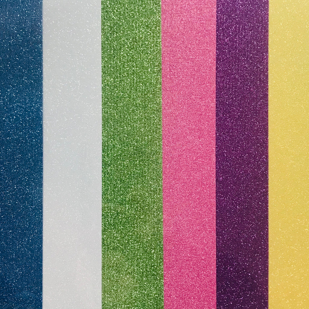Bringen Sie mit diesem saisonalen Vinyl-Set Frühlingsstimmung in Ihre Designs! Das Siser Glitter Easter Dark Colors Heat Transfer Vinyl Bundle enthält 6 Bögen oder Rollen (je 12" x 12") in folgenden Farben: