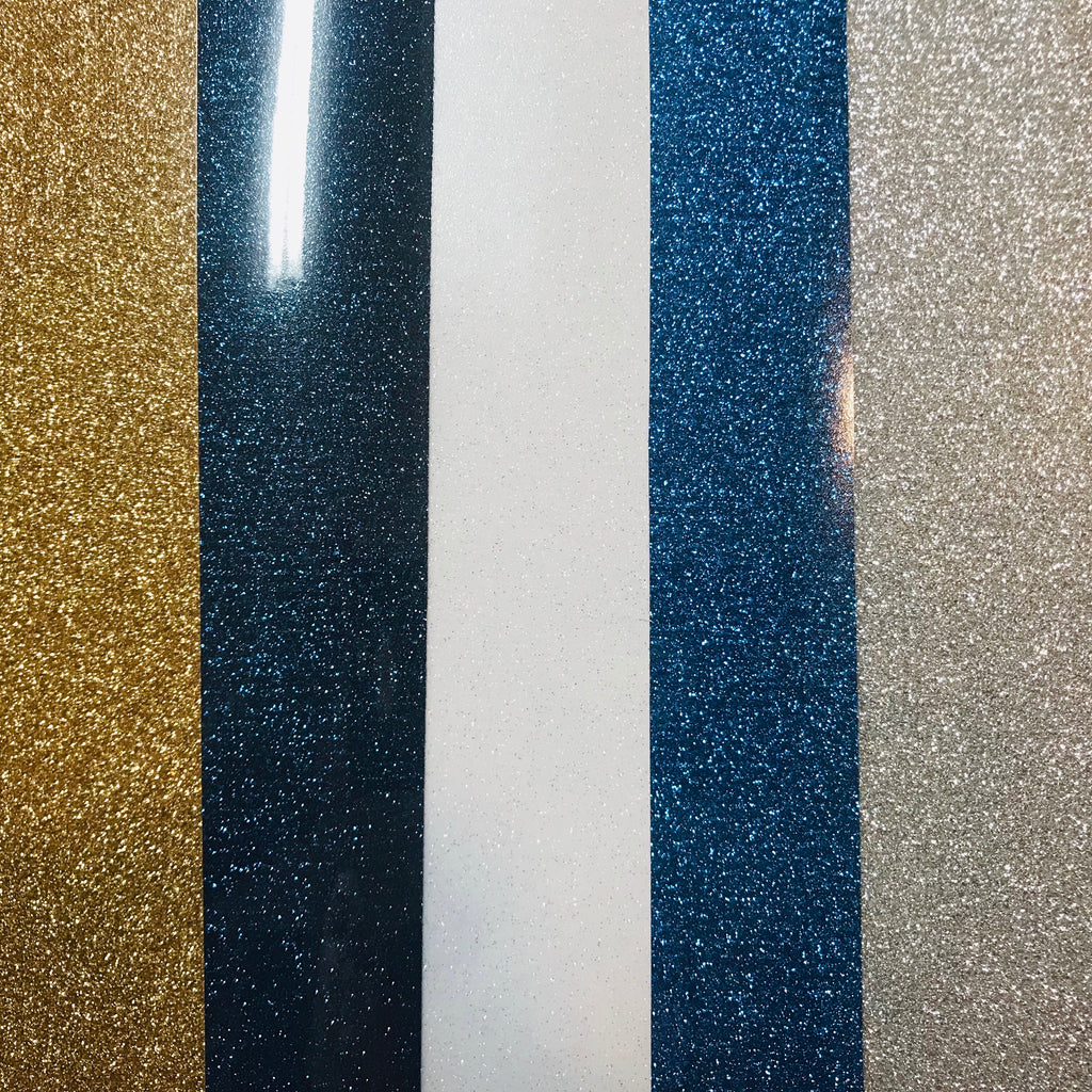 Das Hanukkah Colors Glitter HTV Bundle enthält 5 Bögen à 12" x 12" in folgenden Farben: