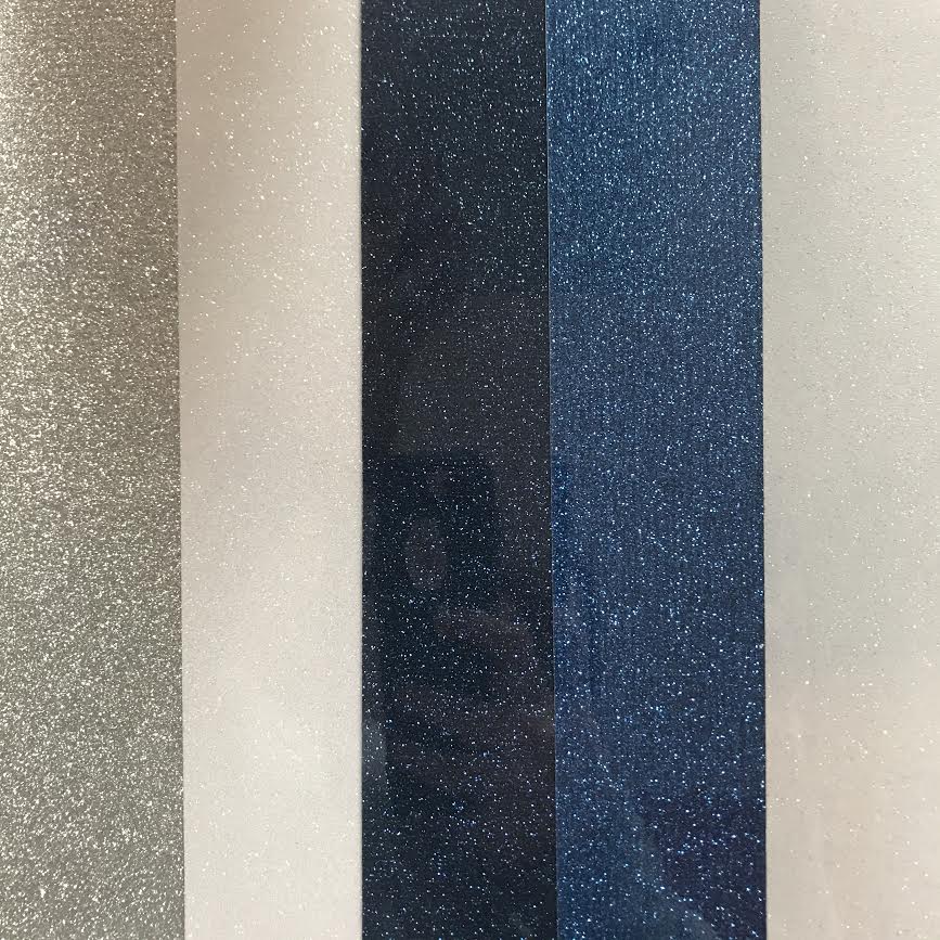 Dieses Set aus Siser EasyWeed Z PHI B Farben Glitzer-Transferfolie enthält 5 Bögen à 12" x 12" in den folgenden Farben: