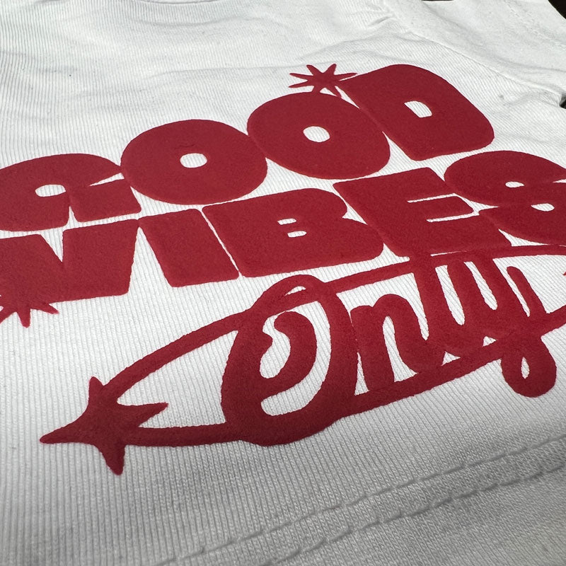 Nuestras transferencias de un solo color dan vida a tus diseños con una textura suave y elegante que se expande al presionarlas con calor. Perfectas para ropa urbana, ropa deportiva y marcas destacadas, estas transferencias se aplican fácilmente y dejan un acabado mate 3D que se siente tan bien como se ve.