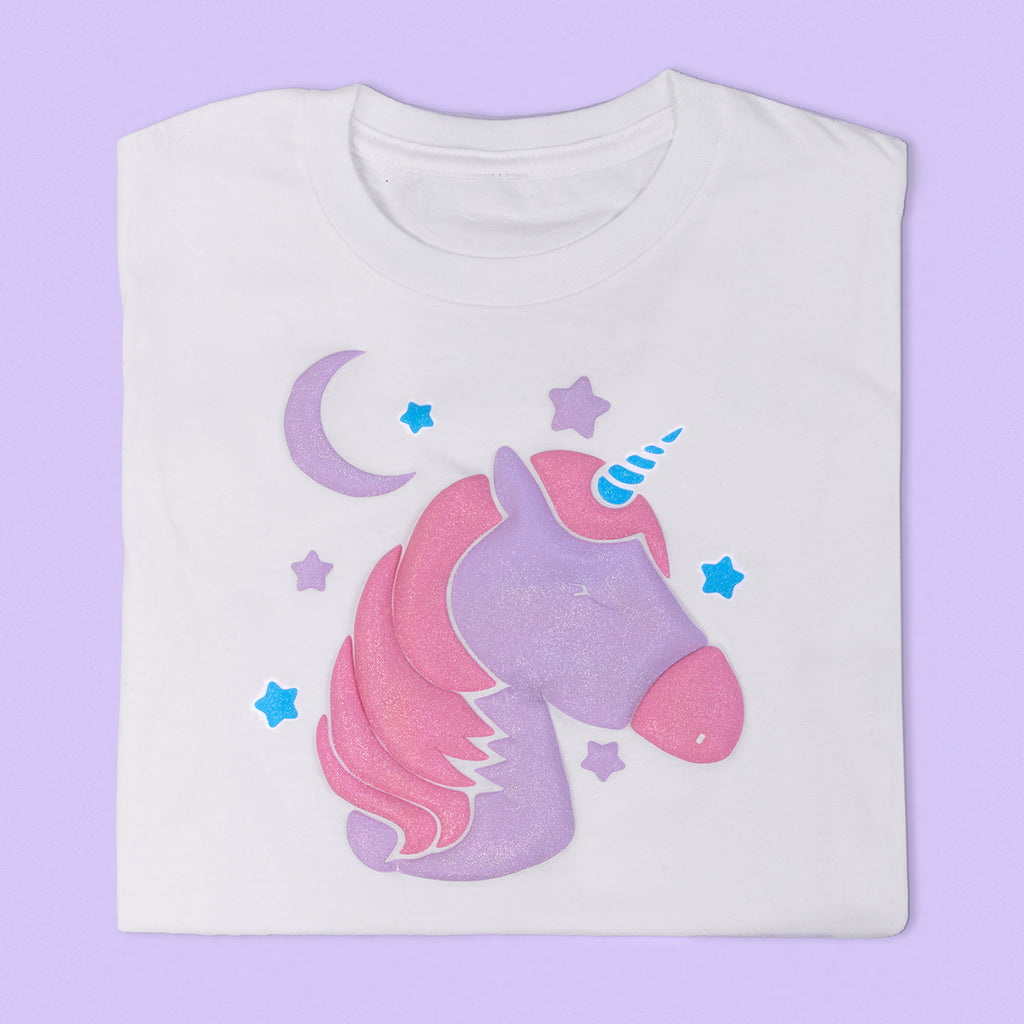 Easy® Puff Glitter is embedded with ultra-fine glitter flakes that provide a brilliant, eye-catching shimmer. It also features a stunning iridescent shine that subtly shifts in color as it catches the light. When heat is applied, the magic truly happens: the vinyl expands into a bold 3D texture while retaining its smooth feel, adding double the visual interest to any design. It’s the perfect way to give your t-shirts, hoodies, and accessories both sparkle and dimension.