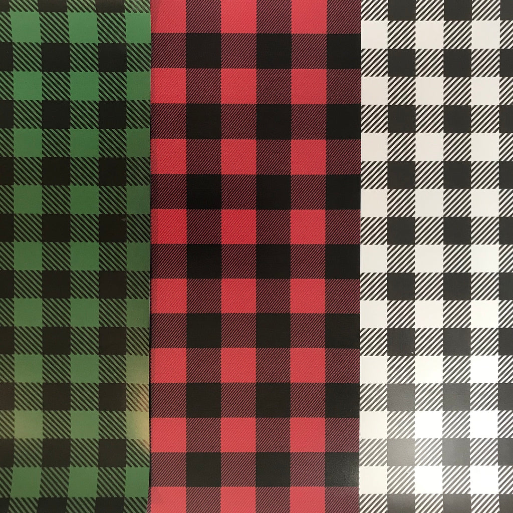 The Buffalo Plaid Patterned HTV Bundle contains 3 - 12" x 12" Sheets of the following colors: