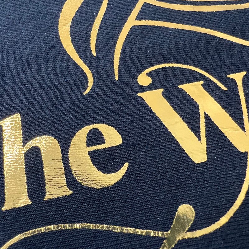 Gold Foil DTF Transfers, like standard DTF transfers, offer versatility in application and can be applied to a wide range of fabrics including cotton, polyester, cotton/poly blends, and more.