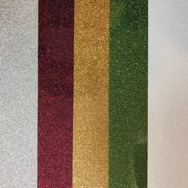 The Old Fashioned Holiday Colors Glitter HTV Bundle contains 5 - 12" x 12" Sheets of the following colors: