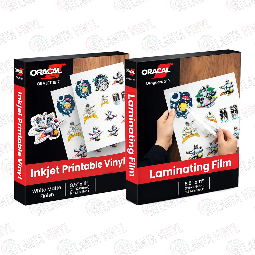 Each bundle includes an equal number of 8.5" x 11" Orajet 1917 printable vinyl sheets and Oraguard 210 laminating sheets, giving you everything you need to print and protect your graphics.